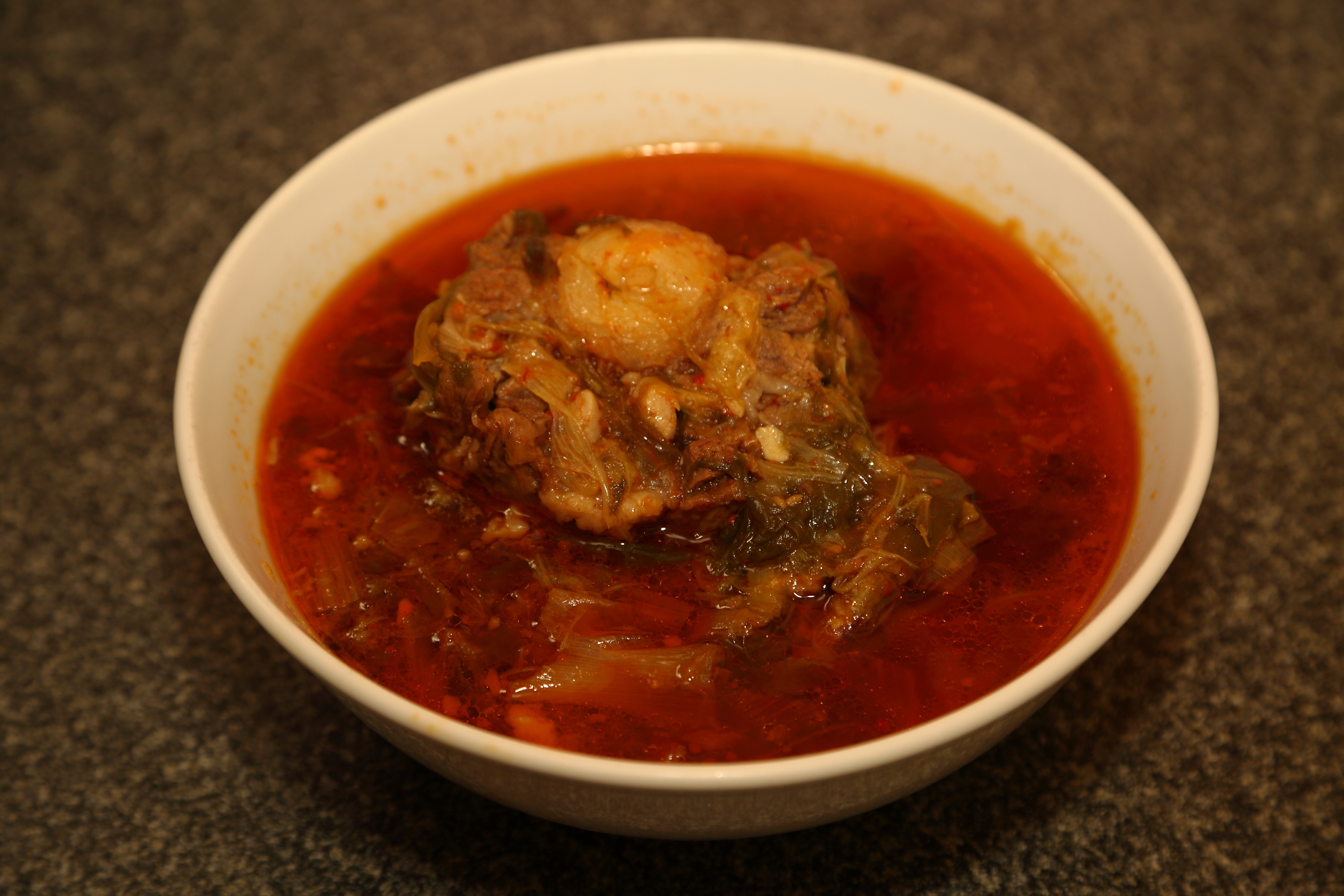 (和牛肉とたっぷり野菜入りの辛いスープご飯)
